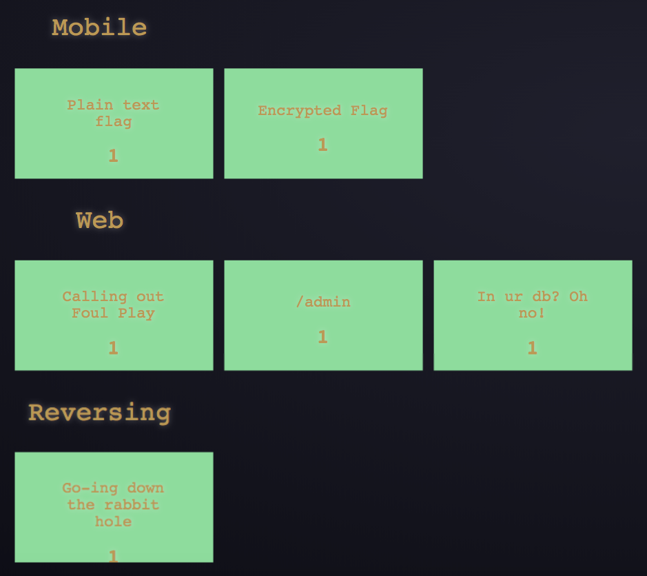 Six challenges, one single Android app. Mobile, Web and Reverse. Awesome! You can get the APK here, if youβre interested. I started the Android SDK emulator and installed the APK. The app looks like this: