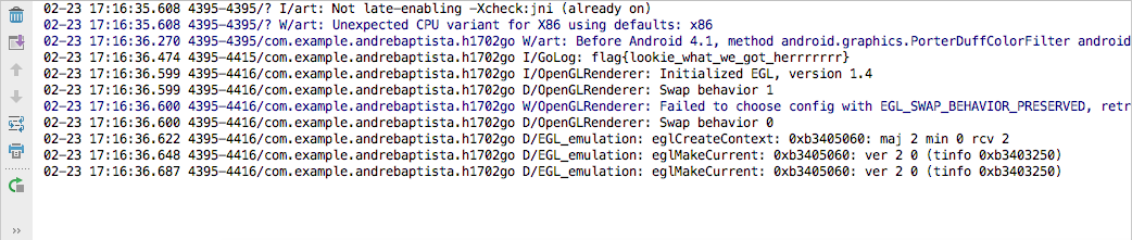 Note that the functions have the same name, but they are different. The first f.a is the second function of the previous decompiled code, which encrypts a string, and the second one is the function that constructs the SecretKey. So, I inspected this log using adb logcat -s "TEST" and the output was: