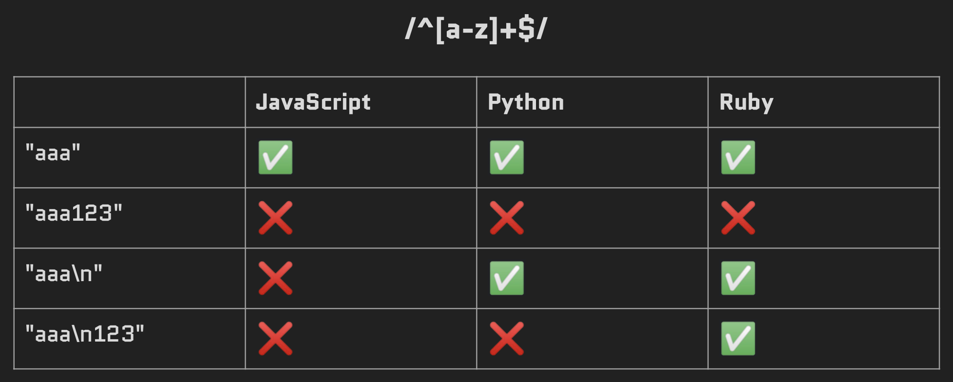 Another problem is that developers usually validate the input and still use the original one instead of extracting the matching part. Using ^ and $ to assert the beginning and end of the string can still allow newline characters, or these assertions can be missing.